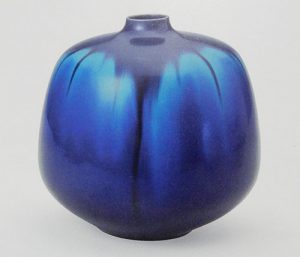 釉薬 で色彩を調整した鮮やかな群青色に強い個性があり、海外にも多くの作品を発表し、高い評価を得る。