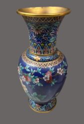 この 花瓶 の 置物 は 七宝焼 のなかでも骨董品の 有線七宝 で出来ている 置物で買取ました。有線七宝でデザインが面白く、可愛らしい置物で、有線七宝の細工も非常に細かく丁寧で、職人技 が綺麗な 骨董品 の七宝焼の置物で買取ました。しっかりした作りで 重量感 がある骨董品の七宝焼の花瓶の置物で、有線七宝 鮮やかな草花の 図柄 が楽しい骨董品の七宝焼の置物です。可愛らしい骨董品の七宝焼の置物で、有線七宝の細工も細かく丁寧で、昔の 職人技 が見られる骨董品の置物の七宝焼です。