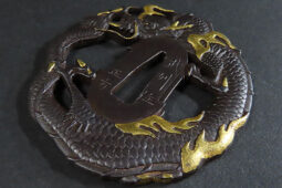 四国の徳島県阿南市のお客様より鍔や小柄の刀装具の骨董品出張買取を頂き、このような鍔をお譲り頂きました。表側と裏側が丁寧な彫金細工と象嵌細工で表現されており紹介します。