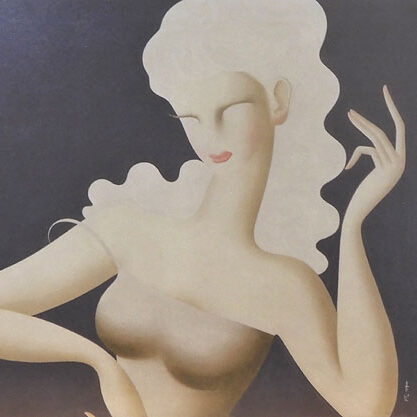 独特の デフォルメ が施された、柔らかな曲線と色調で描かれた 女性像 などが有名です。