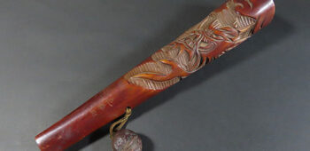 古道具の骨董品宅配買取依頼を頂き、アンティークの彫り物が施された煙管筒をお譲り頂きました。