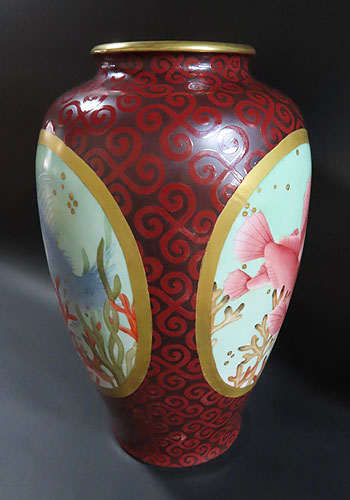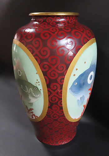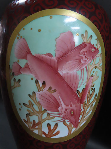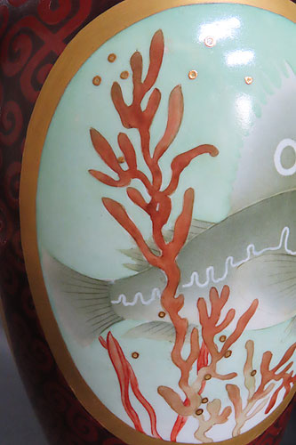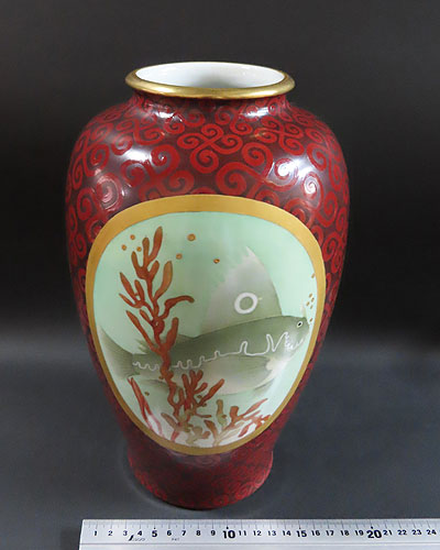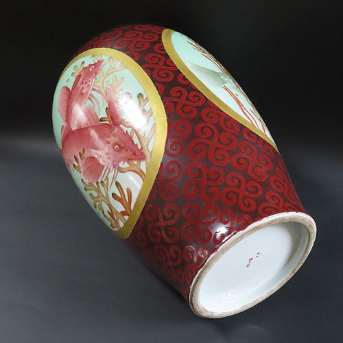 この 花瓶 は九谷鏑木製と言われ、外国のお客様に人気で輸出品の 骨董品 として九谷焼の中では有名です。