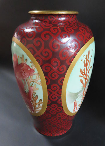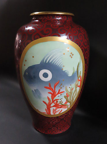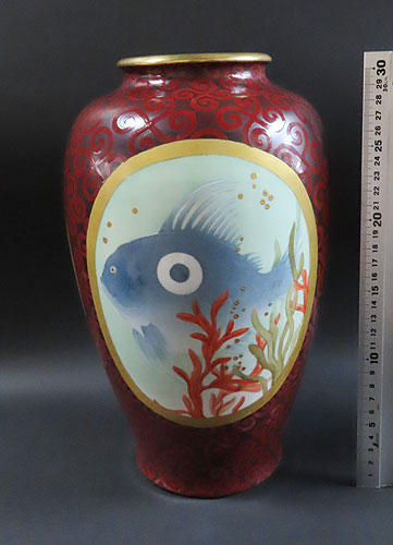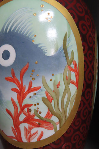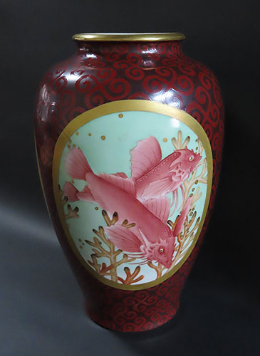 明治時代から昭和初期頃にかけて作られた九谷焼の花瓶です。