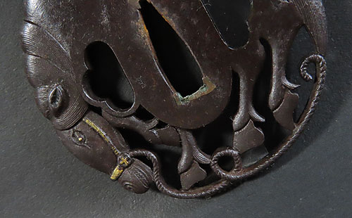 鉄地にご覧のように細かい 象嵌細工 や彫金細工を施すのは難しく、伝承された昔の職