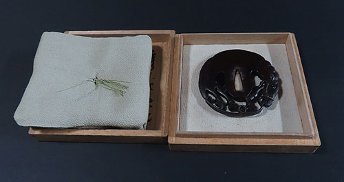 鉄地で時代は江戸時代の鍔です。銘がはいっております。時代は江戸時代の鍔で材質は