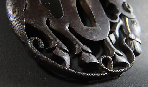れた彫金技法の彫りが 冴える昔ながらの鍔です。