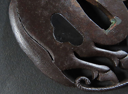 龍の彫金細工が表面と裏面から 彫金細工 と 象嵌細工 が丁寧に施されており、