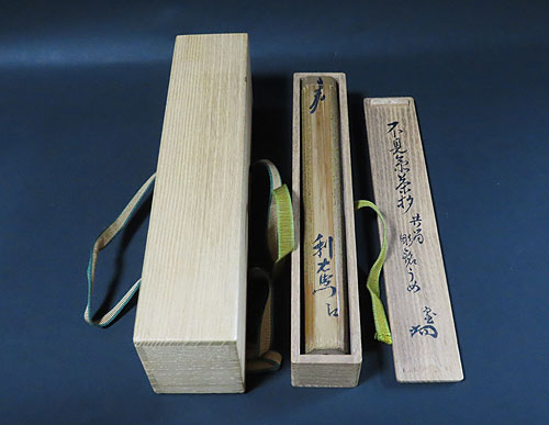 本来、この茶杓のように昔の作られた作品の極めを当代の宗匠や作家が書かれている作品が一番大切なことで、この作品は高価に取引されていると思われます。