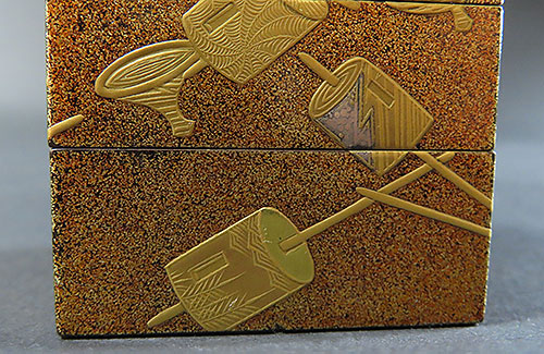 このような小さな小物入れの様な蒔絵箱は、煎茶道具 や抹茶道具の 茶道具 にも 香合 や飾り道具として使われ、遊び心のある面白い作品が多くみられます。