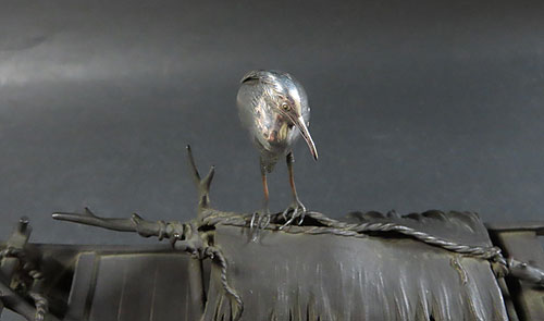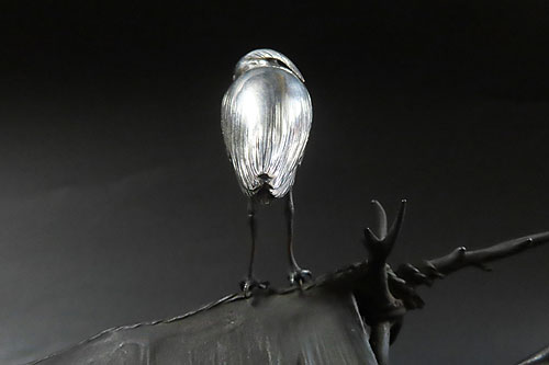 中央の鷺は銀製品で、丁寧な彫金細工が施され、当時の職人技が素晴らしい 逸品 です。