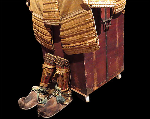 この鎧兜は兜、胴、袖、及び小具足からなり、どれも戦いに出陣する際には無くてはならない装備です。
