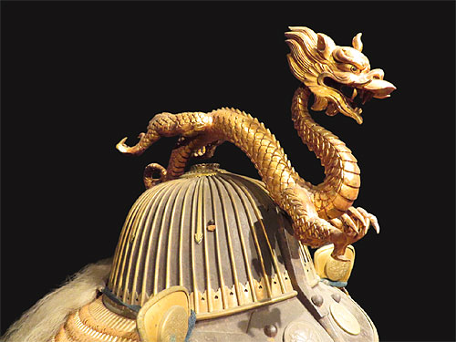 漆塗が施された前立は木製で出来ており、五爪の龍が施されております。