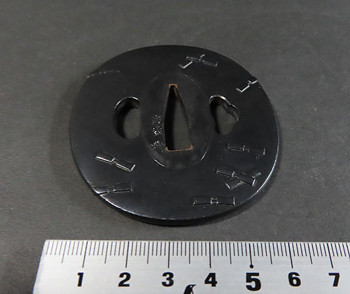 「宗隣」と 銘 が入っており、江戸時代後期の刀装 金工師 で、水戸生まれ。横谷に学び、高彫 色絵 の工法で有名な優工です。江川斎桂宗隣。