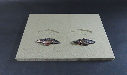 今回掲載させて頂く 刀装具 は、競り市やオークションで買い受けた作品では無く、明治時代の コレクター のお孫さんより一括で直接買い受けた品物で、うぶ荷と呼ばれる貴重な蔵出しの作品で、現状のまま販売しております。