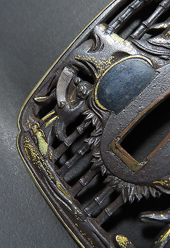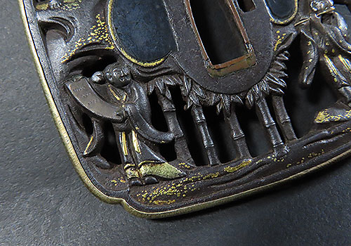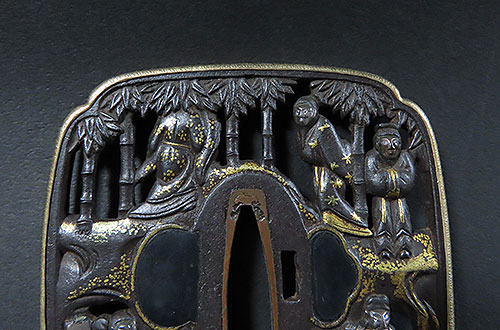 唐人や竹林が伝承された江戸時代の細かい透かし彫りや 象嵌細工 、彫金細工 で優雅に表現されております。