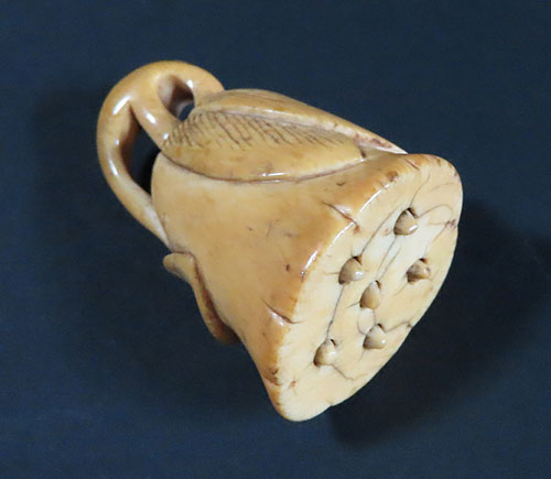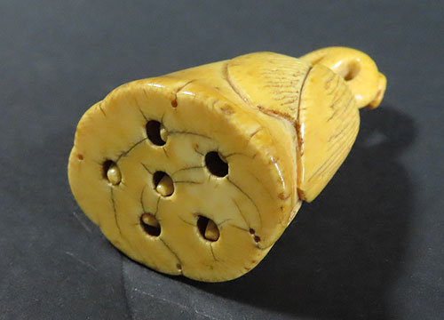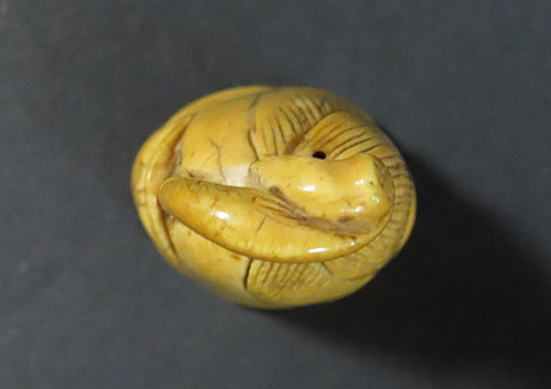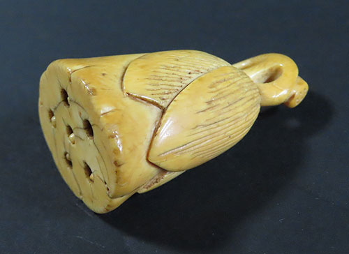 この根付は江戸時代で木製の型彫り根付です。