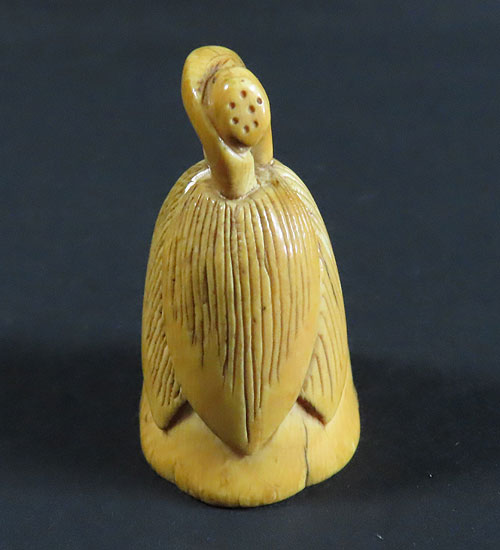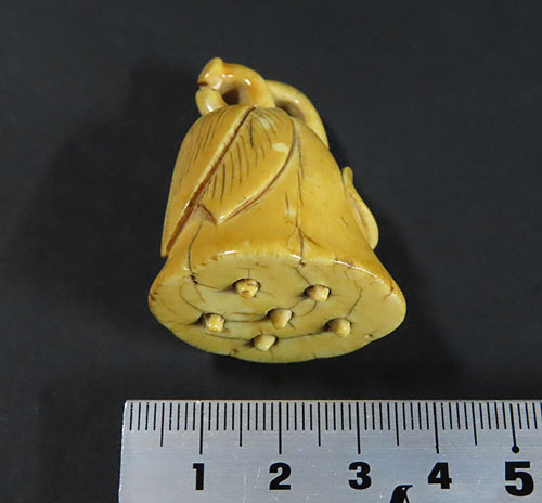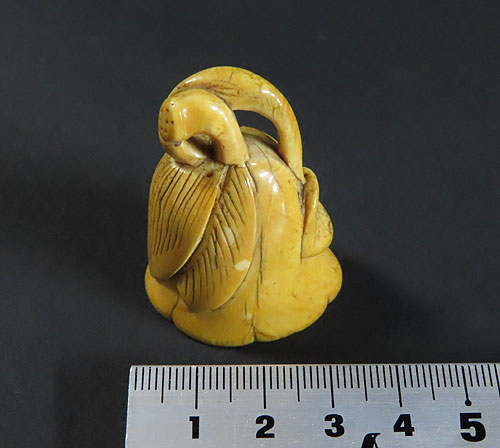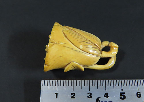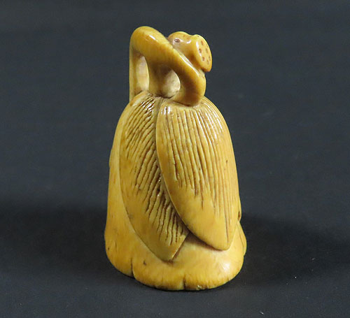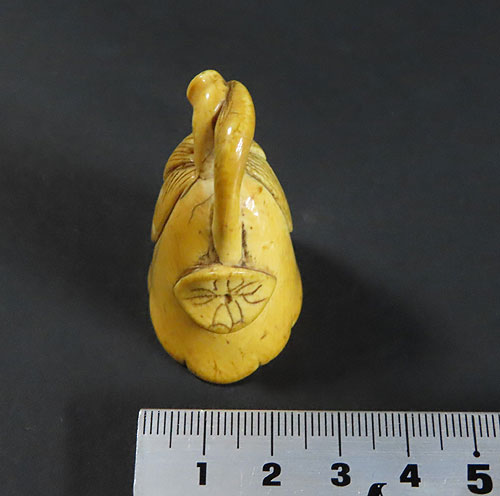 材質は木製です。材質は牙で出来ているように思われます。古い時代 の形彫根付ですが、