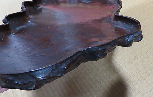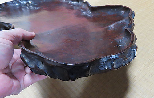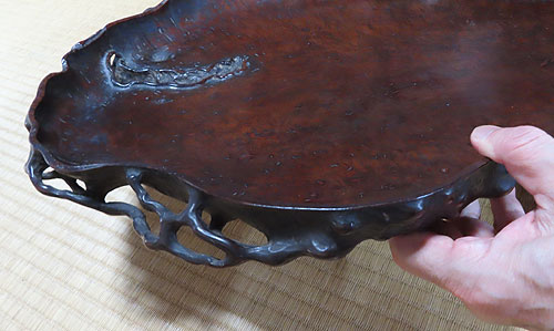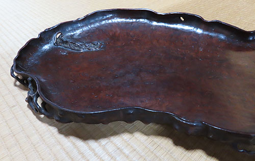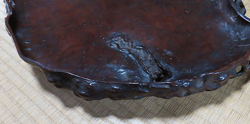 古い時代 の葉盆で、虫喰 のような模様に作られております。
