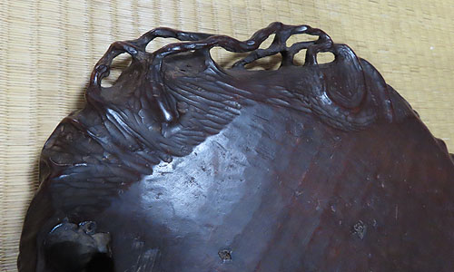 葉の縁や、茎の部分まで丁寧に 彫刻 されており、昔の 職人技 が見られる逸品です。