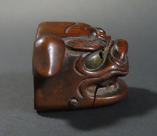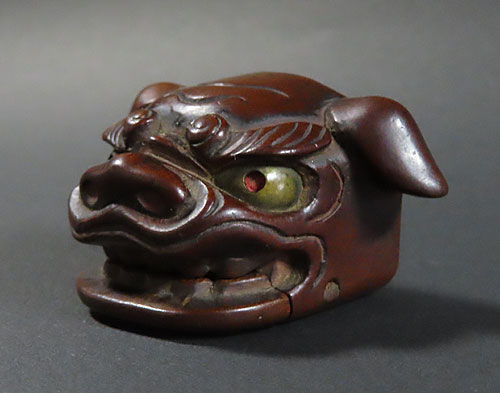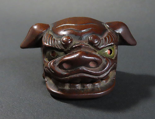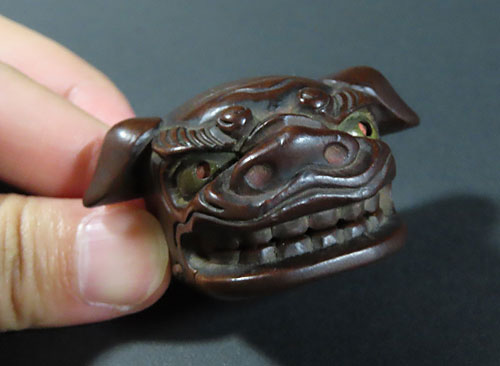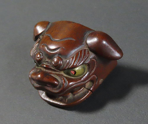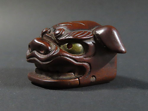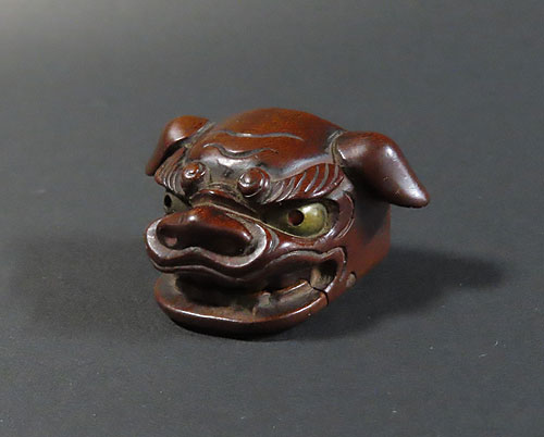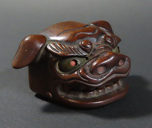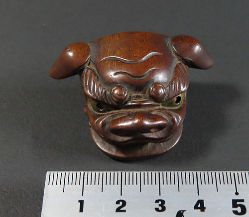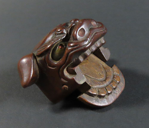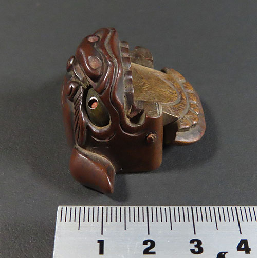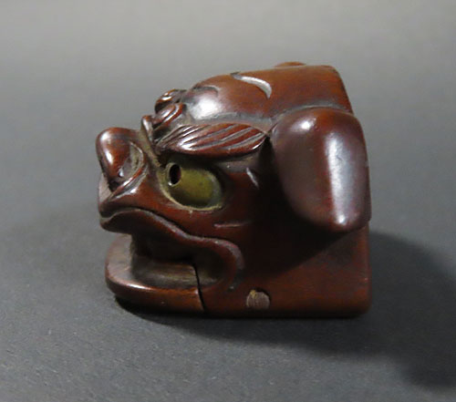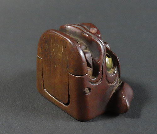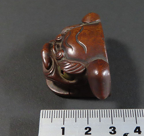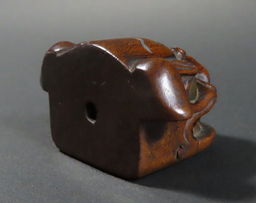 この根付は江戸時代で木製の型彫り根付です。