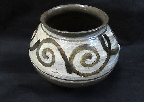 ふっくらとした形や素朴な 図柄で、上がりも良い 壺 です。