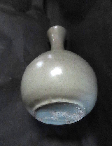 李朝陶磁器のなかでも高麗青磁は人気があり、この作品はご覧の様に綺麗な発色ではありませんが、李朝陶磁器なので紹介しております。