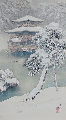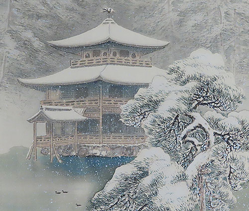 日本を代表する 図柄 で雪の金閣寺が丁寧に描かれております。