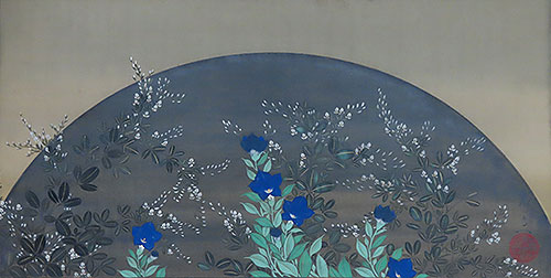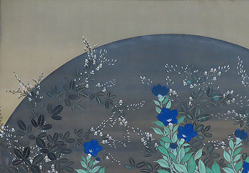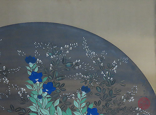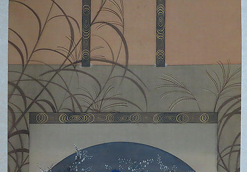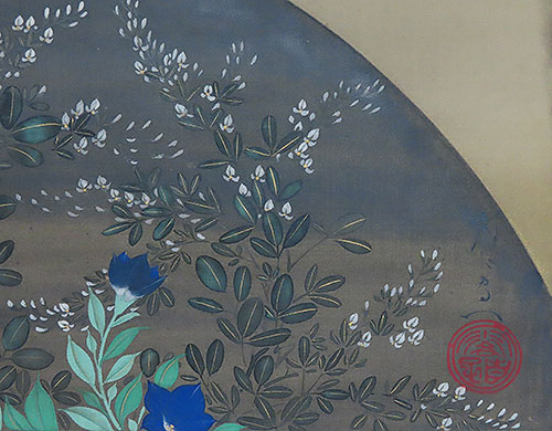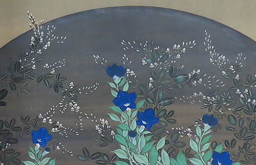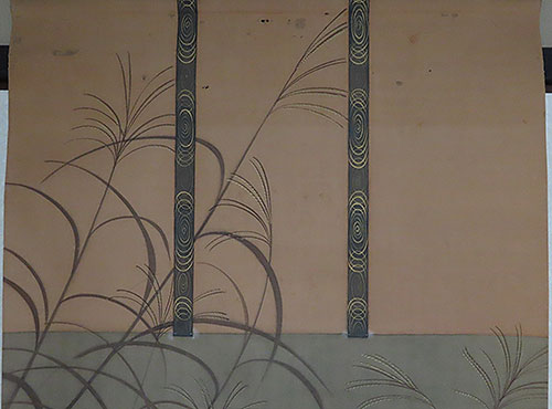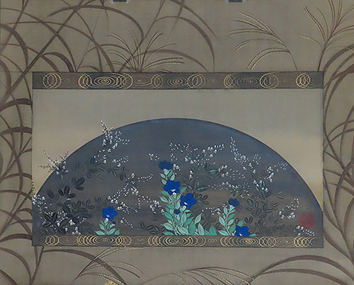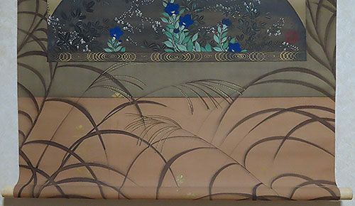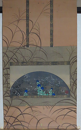 古裂の表装にはススキが描かれ、本紙の絹本地には秋草が描かれております。