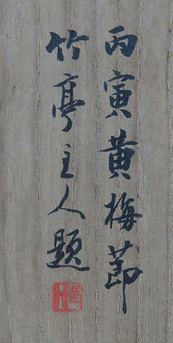 長年の時代を経てきた重みのある風格が見られる名品です。木彫りの根付で、木味の温もりが伝わる逸品です。