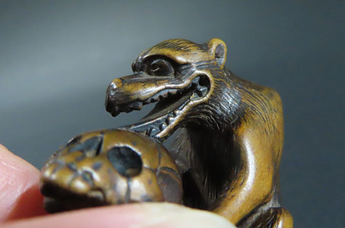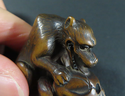 伝承 された彫る技法が素晴らしく、現在では、なかなか見られない存在感のある根付です。