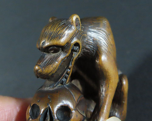 昔から 伝承 された根付師の 職人技 が作り出す、存在感や風格、また細部にわたる細工も丁寧で素晴らしく、さすがと思わせる 名品 です。
