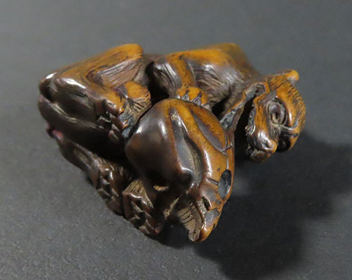 直接買い受けた品物です。生き生きとしたそれぞれの表情が楽しい 根付 です。長年の時代を経てきた味わいのある作品です。