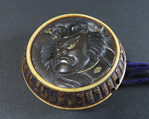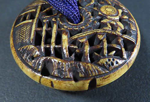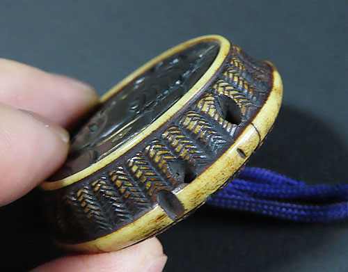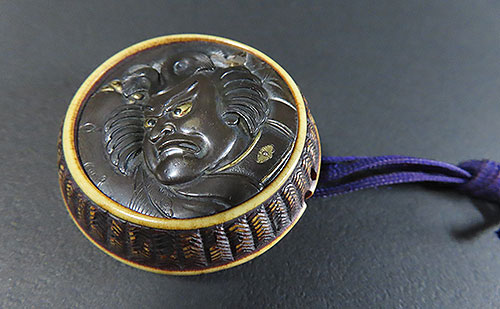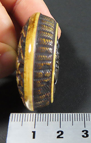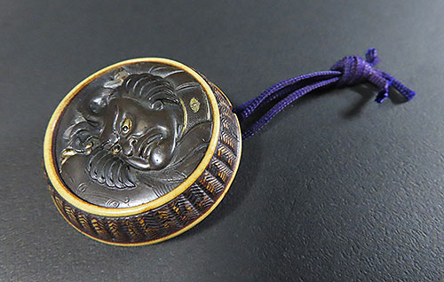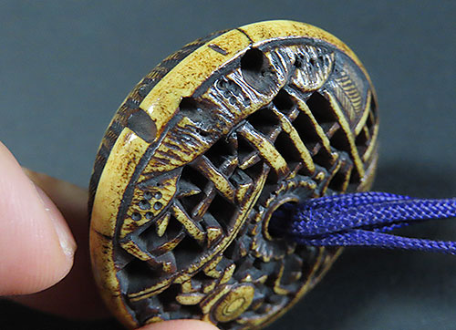 このような日本で作られた 骨董品 の根付、買取させて頂きます。面白いデザインで 細密 にしっかり編み込まれ