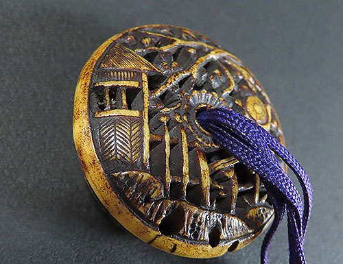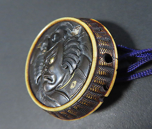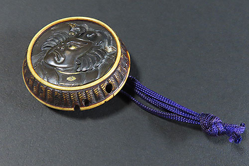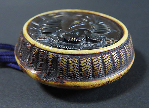 饅頭根付は鉄地に 象嵌細工 や彫金細工が施されております。