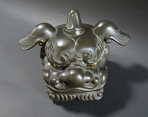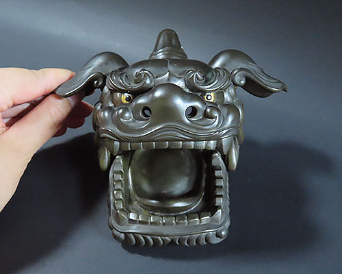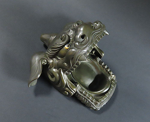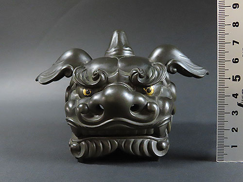 加賀の獅子頭は昔から有名で、この作品も丁寧で味わいのある昔の 職人技 が面白い逸品です採光の加減で白く光っておりますが、綺麗な状態で傷んでいる箇所は有りません。