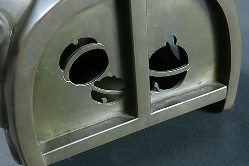 地肌に丁寧に施された 四分一 ならではの深みのある色合いの波模様が、武将の彫金細工や 象嵌細工 をいっそう引き立てております。
