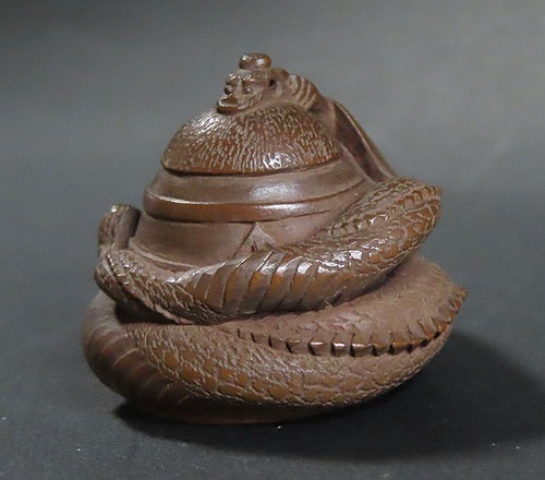 伊勢根付当代の正直が「伊勢根付当代の正直 五代 阪井正美 作品集」の本を出版されており、ご覧になり、同じ伊勢の近くにおられ、これらの根付の作品を持っていかれ、全て本物と伊勢根付当代の正直、五代 阪井正美さんに 鑑定 してもらわれた後、当店に売却頂きました。