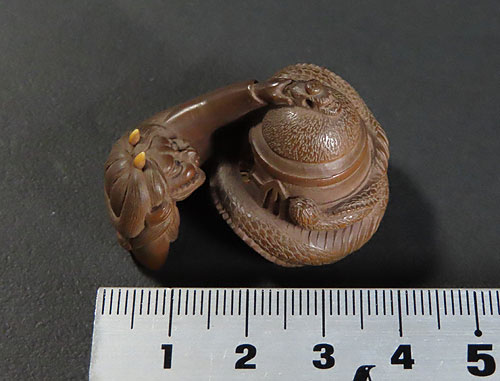 長年の時代を経てきた味わいがありますが、割れたり、欠けたりしている所は無く、保存状態 の良い根付です。