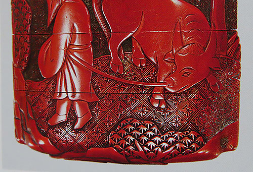 この作品は江戸時代の作品で、材質は 堆朱 で出来ております。
