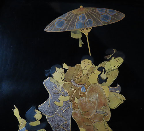 非常に 細密 な蒔絵が施され、江戸期の古い時代の図柄です。