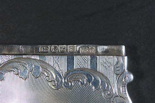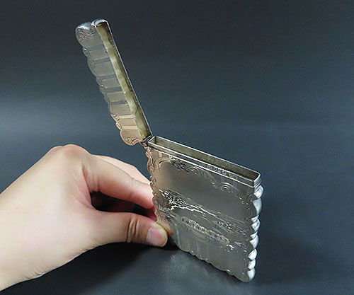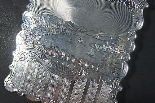 材質は外国製なのでよく分かりませんが、分厚い銀のような金属で出来ており、写真7、8のように刻印が入っております。