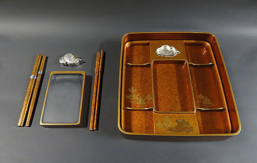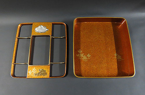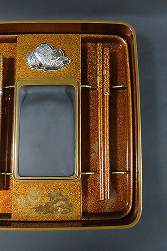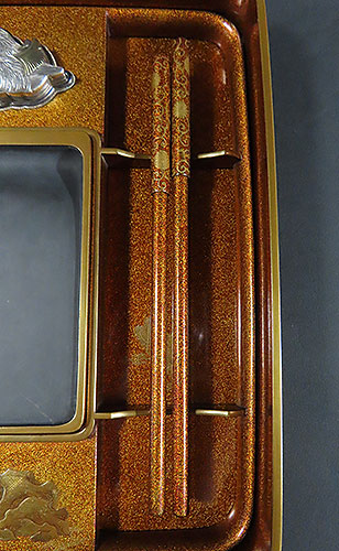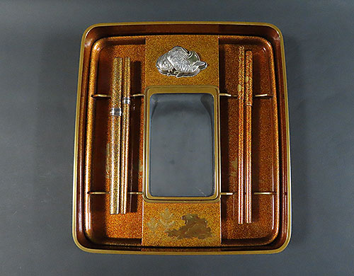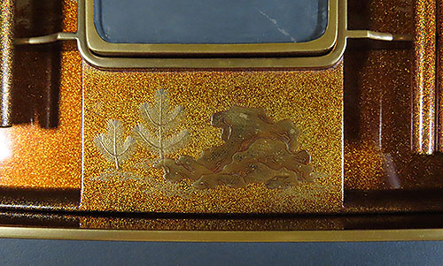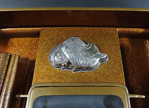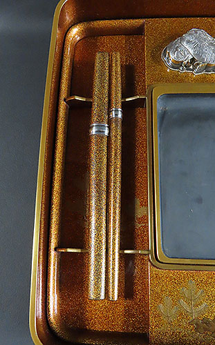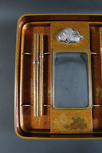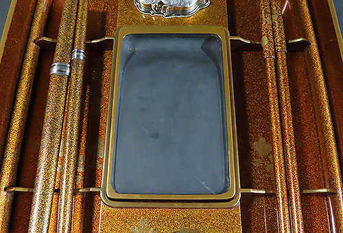 ご覧のように、内部の書道具や仕切りにも丁寧な技法が施され、上品さの中に華やかさと迫力がある素晴らしい名品です。