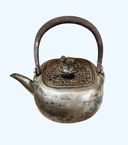 鉄は硬くて細工が難しいのですが、この作品の取手は鉄でできており、貴重な 逸品 です。