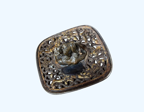 摘みは翡翠で出来ており、ひびや傷等無く、保存状態 の良い翡翠です。