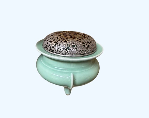 このような 青磁 の香炉は中国のお客様に人気で、高価買取させて頂きます。