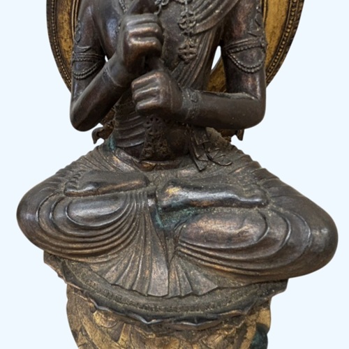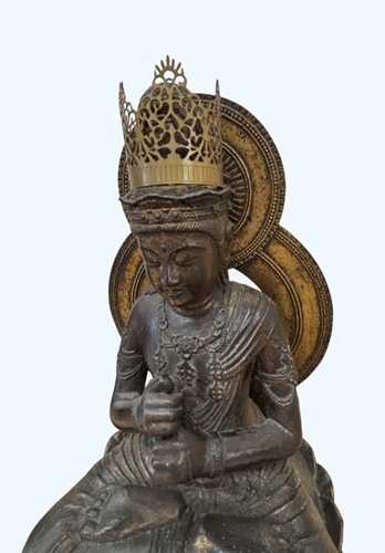 綺麗な上品な箱に入った 木彫り の仏像です。 表面からみた時代の仏像なら高価買取対象です。 本歌の仏像ではなく、後作りの仏像で少し、時代付けが施されて、古く見えますが底の木の部分を見ると木目や切り口が見え、そんなに古い作品ではありません。 御覧の様に、優雅さや重量感があり、仏像の存在感に十分の作品です。 本歌の作品なら 中国美術 の作品で、明末清初ぐらいに作られた仏像と思われます。 後作りですがその表現方法に昔の 職人技 が光る 逸品 でさすがと思わせる仏像です。