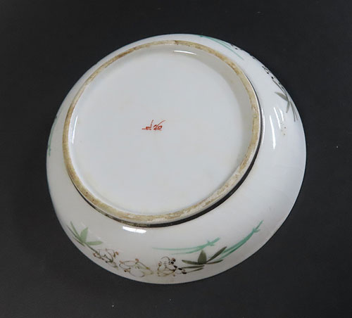 この作品のように九谷焼は丁寧に作られた作品には、内側に濃い色合いで、字や絵が綺