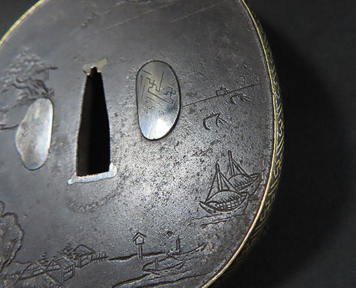 鉄地で時代は江戸時代の鍔です。銘がはいっております。時代は江戸時代の鍔で材質は