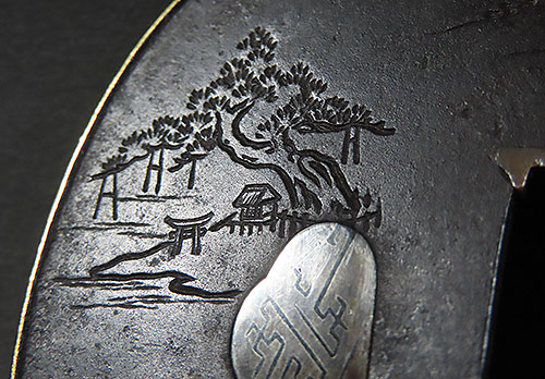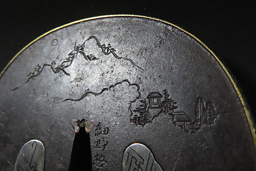 れた彫金技法の彫りが 冴える昔ながらの鍔です。