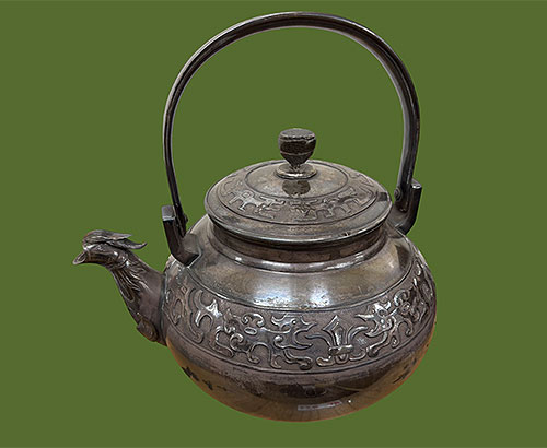 鉄は硬くて細工が難しいのですが、この作品の取手は鉄でできており、貴重な 逸品 です。